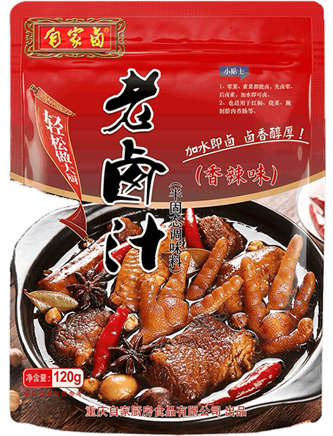 產品 由原來的鹵料類已發展為涵蓋調料、底料、罐頭、燒烤料等六大類產品,單品達百余支。我們以自家鹵為主打品牌,帶動其他大類產品發展。